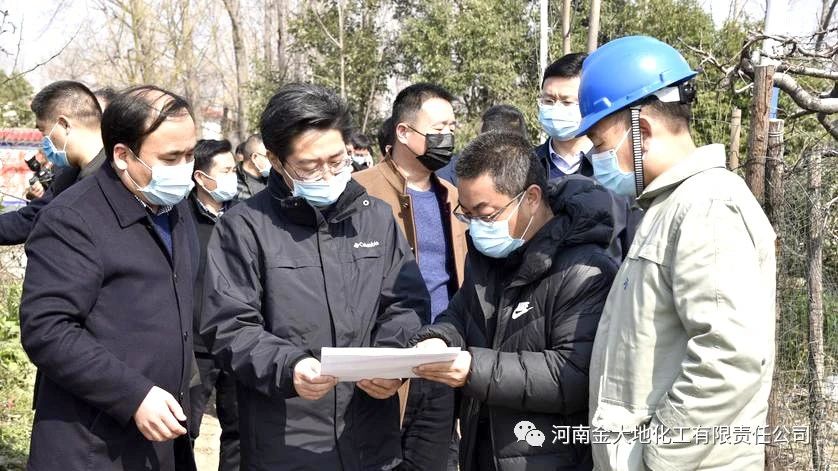 2020年3月4日上午,舞阳县委书记李亦博带领县发改、工信、税务、应急管理、生态环境、自然资源等有关部门领导,到金大地公司60万吨小苏打项目、金山物流园项目、环企林带项目区进行实地调研,舞阳县领导闫沛、许绍伟、周俊伟、赵华锋等一同调研。集团总经理汤顺利做情况介绍。