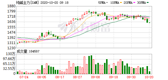 在现货市场上,湖北地区的交割纯碱报价下跌到1670块钱一吨,后期仍有较大下跌的空间还有概率,同时目前现在市场的利润还是比较大的,从高利润的刺激下,供给端加速恢复了市场的需求,同时给市场承压,整体来说,行业开工率已经提升到了往年的80%以上,以山东和江苏地区的库存也呈现了持续上涨的局势,供应压力持续性的积累,并且由于近期房地产市场政策的收窄,给纯碱的下游带来了更多不确定的因素,目前来说期货上的价格仍有可能继续要下。