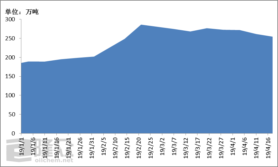 就国内钾肥市场货源的供需情况来看,氯化钾市场货源供应量相对充足,港口港存虽然有所下降,但截止到上周总港存在254万吨,较之去年同期同比增加7.17%,进口钾货源量较大。国产方面暂无明显增加的趋势,青海工厂自三月份陆续恢复生产后,产量相对正常,铁路运输顺畅,多在陆续发运至各区域。