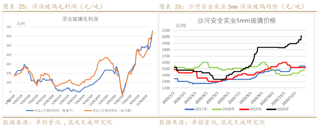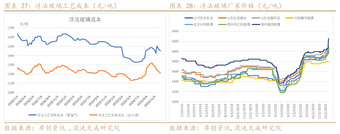 本周浮法玻璃均价为2163.8元/吨,较上周价格上涨75.47元/吨。近期玻璃上游纯碱价格有所回落,玻璃毛利润继续提升。