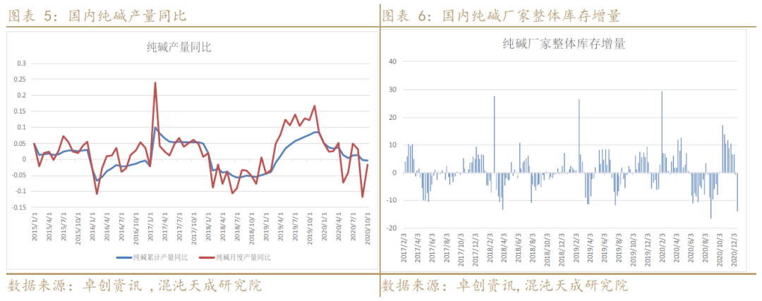 纯碱 10月份产量250.7万吨,同比下降1.45%,9月累计同比减小0.31%,预期今年纯碱产量同比减少2.5%左右。7、8月份产量跟之前统计的周度开工负荷不符,远高于预期,可能有超产情况。
