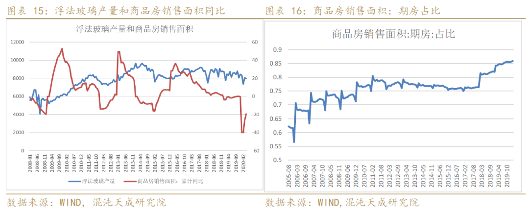 商品房销售同比指标是玻璃需求量的领先指标,近年来,商品房销售期房占比不断提高到当前的86%,而销售期房和竣工之间一般需要1.5-3年时间,导致商品房销售同比指标相对于玻璃产量越来越提前。