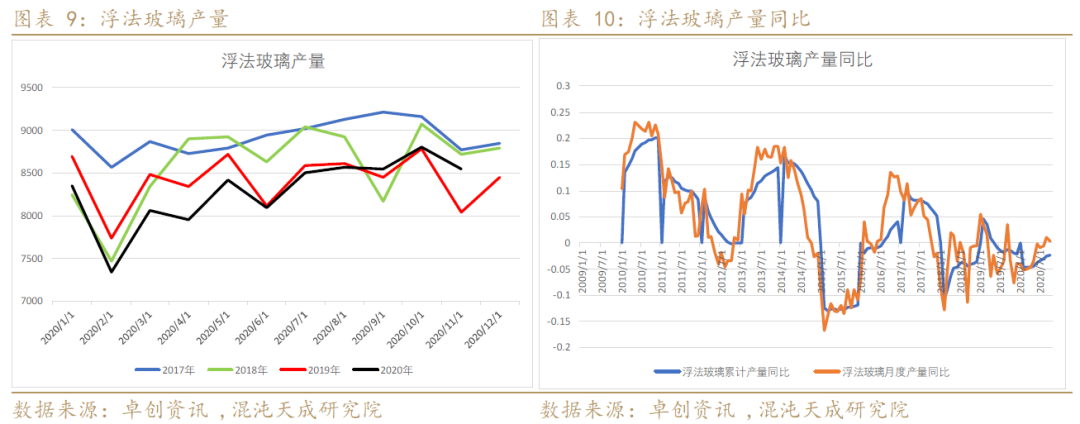 从商品房销售面积同比判断,当前房地产对浮法玻璃的需求缓慢下降并趋于稳定的区间。