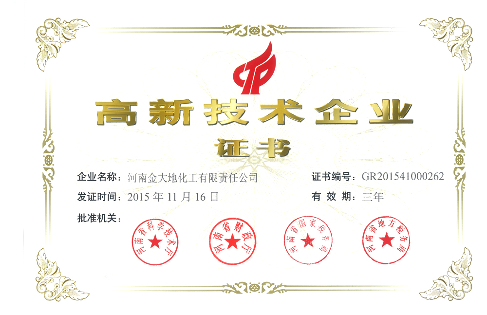 近日,河南金大地化工有限责任公司收到由河南省科学技术厅、省财政厅、省国家税务局、省地方税务局联合颁发的《高新技术企业证书》,这是金大地公司在获得舞阳县2015年度纳税第一名、漯河市企业贡献奖后的又一殊荣。根据相关规定,金大地公司将连续三年享受国家关于高新技术企业的税收减免及财政补贴等优惠政策。
