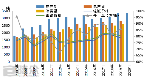 历经70年的风雨兼程,中国纯碱行业实现一次量与质的飞越,从小到大、由弱变强,从追赶到超越里程。2016-2017年,纯碱市场走势强劲,创近几年“碱”峰,随着产能的释放,市场供过于求加剧,2018-2019年行业进入下坡阶段。2020年,中国纯碱市场依旧不容乐观,负重前行,未来中国纯碱市场将何去何从。