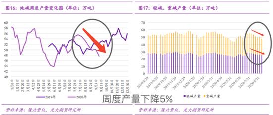 供应方面,进入9月以来纯碱企业装置意外不断。本周南方碱业、江苏井神等企业停车拖动纯碱行业日开机率降至64.74%,日损失量也一度达到3.57万吨。但随着江苏实联、陕西兴化等企业复产并逐步出产品,开机率周末有所回升。但目前纯碱行业整体开机率仍维持在67.24%的低位水平,同比降低23.92个百分点。预计纯碱供应水平短时间内难以快速恢复,供给缩减将给纯碱企业提价心态带来有效支撑。